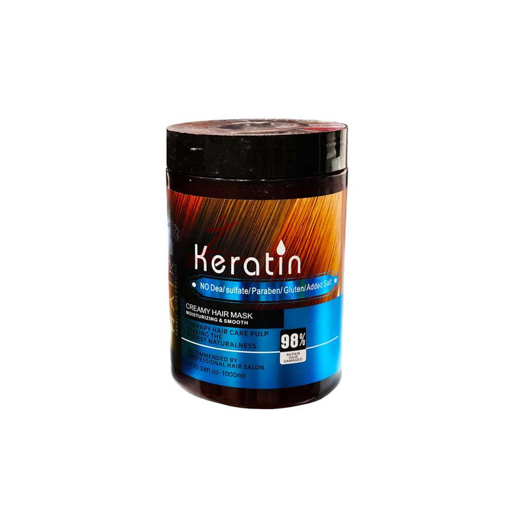 ماسک مو بدون سولفات کراتین ۱۰۰۰ مل hair mask دارای خاصيت حفظ رطوبت و لطافت مو است. پروتئین کراتین یک ترکيب قوي است که به بازسازي و حفظ سلامت ساختار مو کمک ميکند. ويتامين B5 نيز يک آنتياکسيدان قدرتمند است که به جلوگيري از آسيبهاي ناشي از عوامل خارجي و حفظ رنگ و درخشندگي مو نقش دارد.