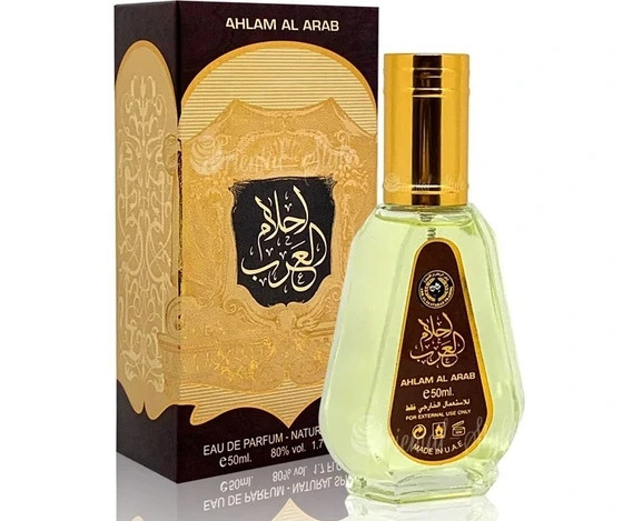 ادکلن زنانه احلام العرب Ahlam Al Arabاز ادکلن های وارداتی کشور امارات متحده ی عربی محصول شرکت ارض الزعفران می باشد. رایحه های به کار رفته در این عطر ادکلن بسیار عالی و بی نظیر هستند و زیبایی ویژه ای به این عطر ادکلن هدیه می دهند ، نوع رایحه این عطر ادکلن خنک ، شیرین و ملایم است همان رایحه مورد علاقه بانوان و خانم های عزیز و شیک پوش ، نت آغازی این عطر ادکلن شامل : مشک ، وانیل و کهربا می باشد که حس و حال مثبت و فوق العاده ای را در شما ایجاد و تقویت می کند ، نت میانی عطر و ادکلن شامل : دارچین ، جوز هندی ، نت های چوبی و سرو می باشد و نت پایانی این عطر و ادکلن شامل : نت های میوه ای و مرکبات می باشد.